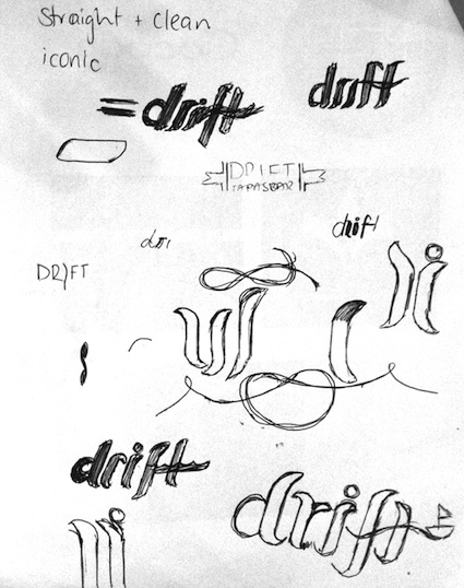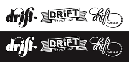 Stage one has consisted of a logo design for ‘Drift‘ that needed to portray the simple and eclectic feel of the proposed bar, while incorporating the beach location. Below is the start of the design process for Ashleigh, with her initial hand drawn design (love!) through to her first proofs.